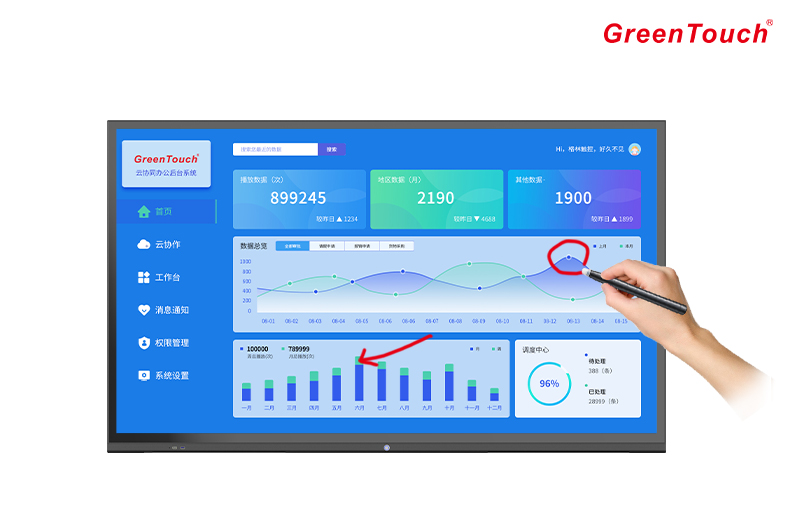 GreenTouch conference whiteboard is a smart conference device.It integrates many technologies such as high-definition display,human-computer interaction,multimedia information processing and network transmission,making it easy to write on the conference machine.Annotation,synchronous interaction,multimedia,remote video conferencing,etc.,greatly improve communication efficiency in applications such as conferences,presentations,industry command,deployment,etc.,and are the preferred solutions for office,teaching,and graphic interactive presentations.